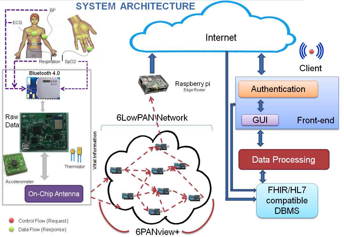 We have considered a scenario of old age home that needs reliable, affordable and scalable healthcare solution. Further, this solution should support limited mobility such that daily activities of the inmates are not affected. The figure shown captures the scenario we are addressing. It is also possible to extend this for people who are home alone and need care. Idea is to remotely monitor the health of a person in a non intrusive and transparent manner.